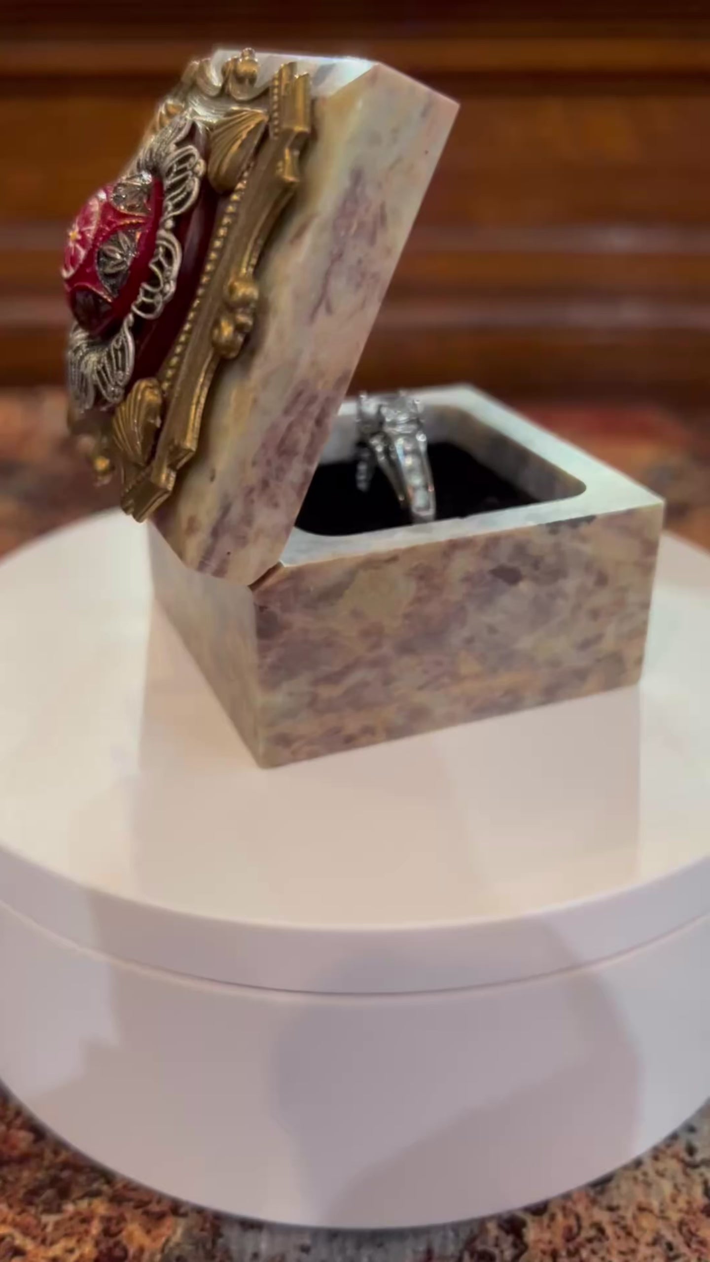 - Empire inspired red Crowned Soapstone Ring Box.